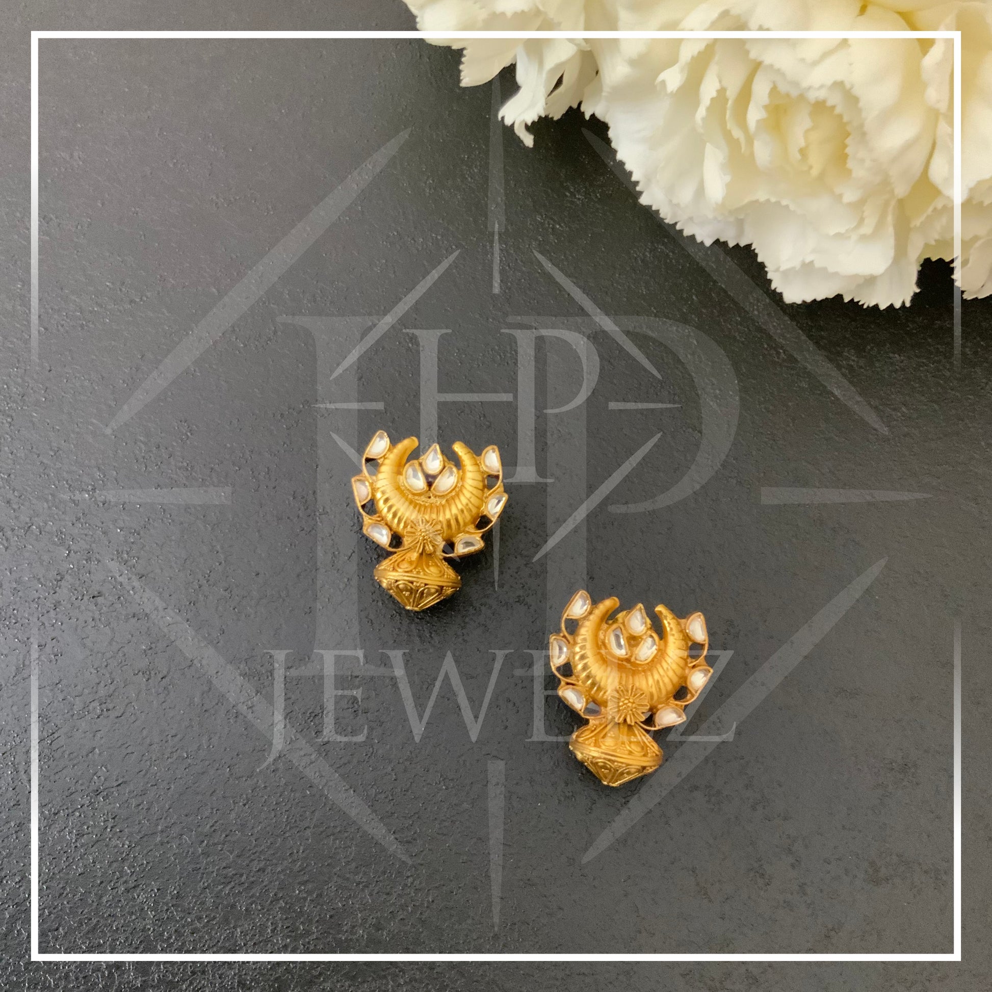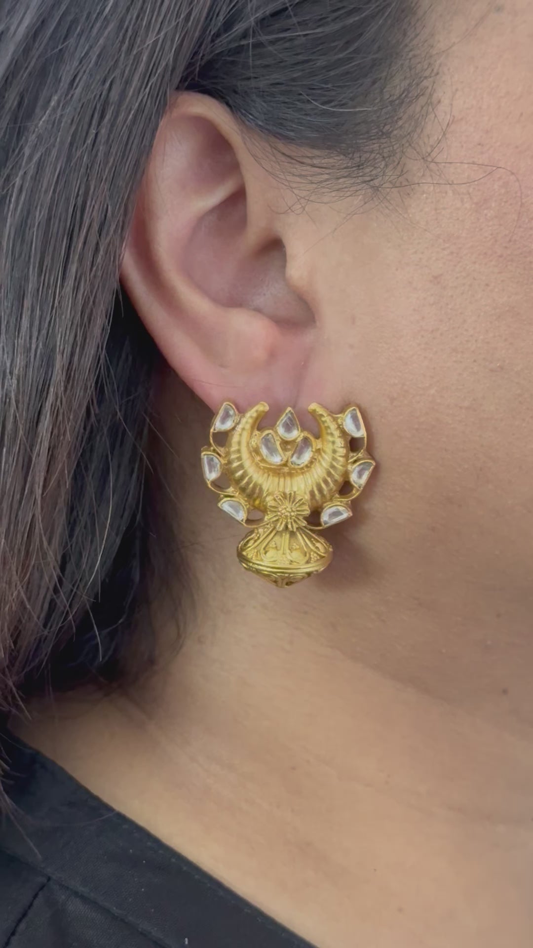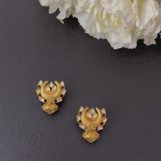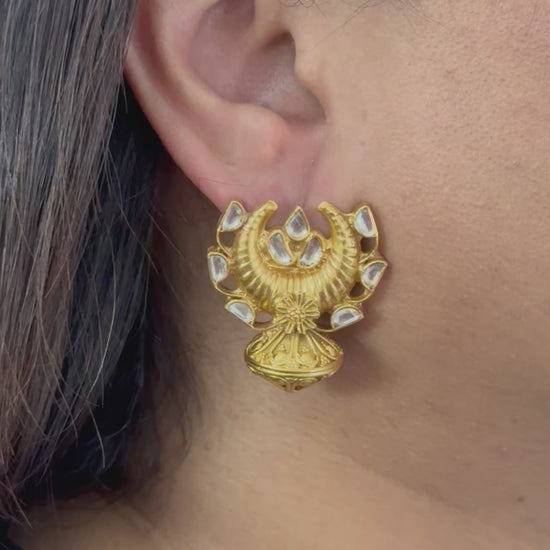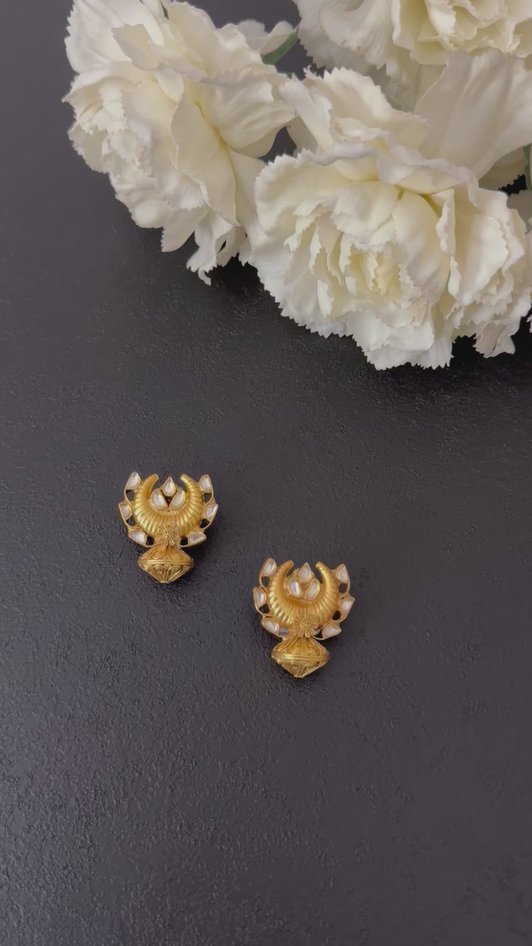 The ornate patterns and delicate detailing of the jadau studs add depth and dimension to the design, while the gold plating enhances their radiance, making them a versatile accessory for any occasion.